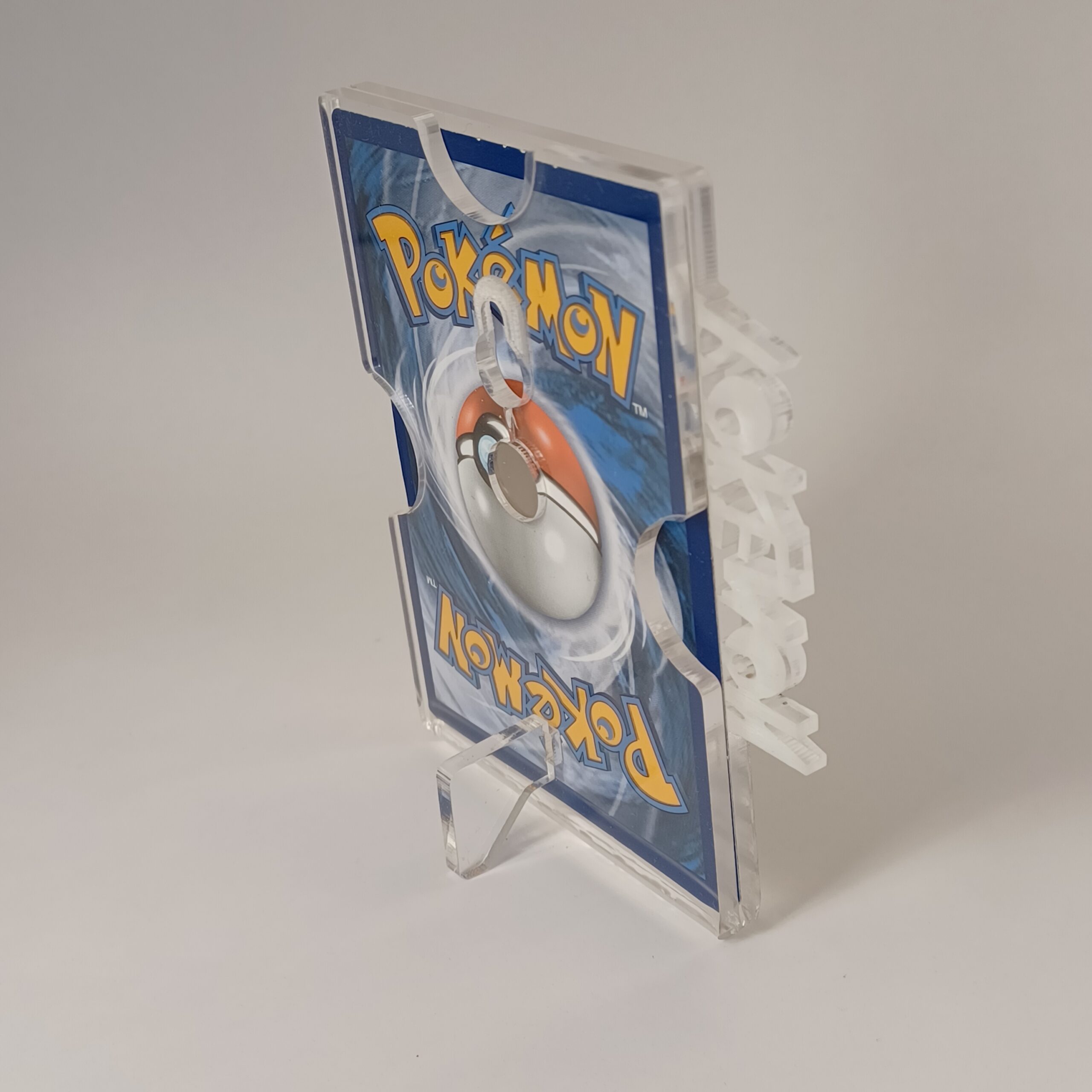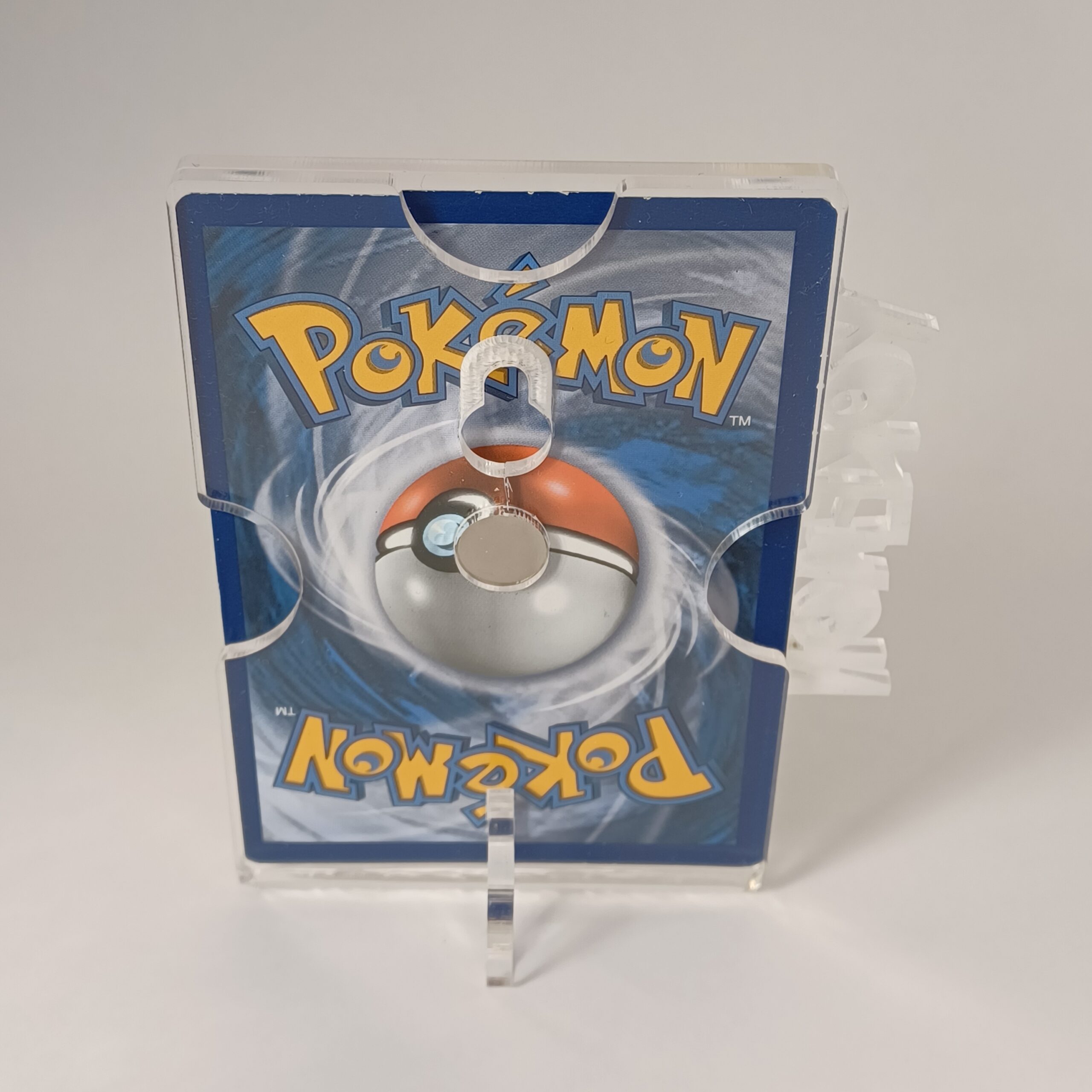 De Pokémon kaart blijft in deze display onbeschadigd en netjes.